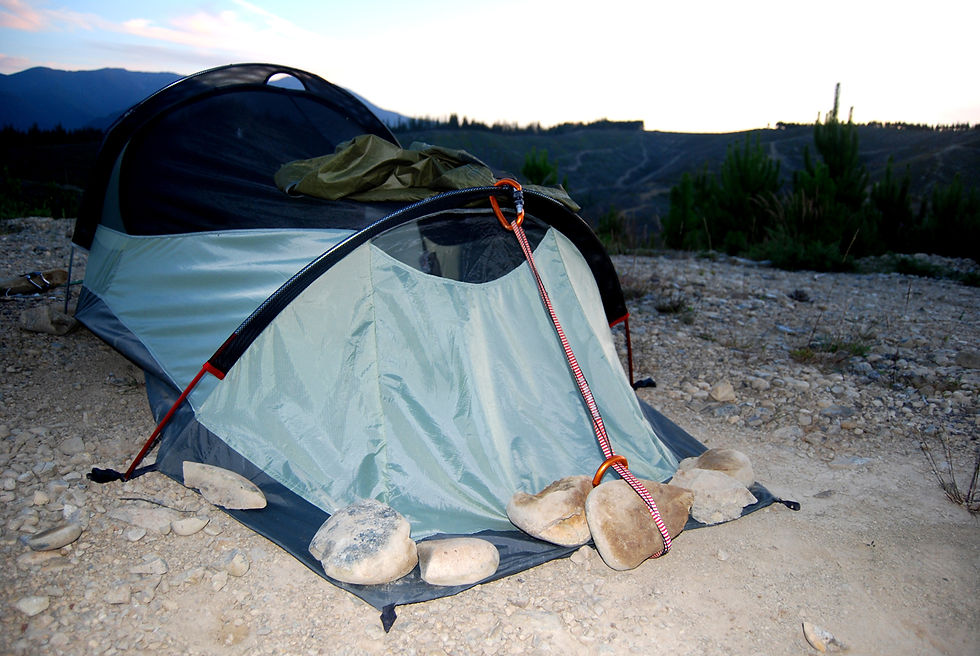 Improviso un macuto con la mochila pequeña, tienda, esterilla, saco, camping gas y cacerola atados de mala manera con cuerdas a la mochila. Empiezo a andar desde el pueblo de Whakapapa, 2h hasta el primer refugio, donde todos los turistas de cartera son llevados en bus para comenzar desde allí, pero yo sigo con mi particular cruzada contra todo lo turista, así que voy andando que es gratis. El día es bueno, y se ven los picos con claridad. Una montaña con perfecta forma cónica se divisa desde la lejanía, es el Mt. Ngauruhoe, monte Doom (Mordor) en la película del anillo, hacia allá me dirijo. El terreno es muy desértico y volcánico, por momentos me parece ver a Golum asomarse entre las rocas. Desde el refugio continuo mi marcha hacia el collado, donde empieza la verdadera subida al pico. 600m de desnivel literalmente rectos hacia arriba, no hay sendero, así que cada uno abre su camino por donde le plazca. A cada paso, retrocedes medio, es lo que tiene querer subir un volcán, terreno arenoso (ceniza) y pequeñas chinas, aún así consigo superar ese desnivel en 1h30’, y plantarme en la cima de Mordor, Mt Ngauruhoe (2291m). Las vistas son alucinantes, al fondo el Mt Ruapehu, y al otro lado, una tormenta de miedo que se avecina, así que tiempo de fotos, y rápidamente a descender para buscar un lugar refugiado para pernoctar, no sin antes ser acribillado por las famosas “Sandflies”. Si el ascenso fue complicado, retrocediendo a cada paso, el descenso todo lo contrario, muy divertido, por cada paso avanzas siete, así que corriendo montaña abajo como buena cabra montesa. Planto la tienda bajo una roca enorme (la única en todo el collado) que me protegerá durante la noche a los pies de Mordor. Cualquier fotógrafo profesional hubiera deseado estar ahí en éste atardecer, pues el sol me da las buenas noches mezclándose con las nubes tempestuosas que se acercan desde el norte, creando una combinación de colores que me atrapa durante un par de horas, plasmando el momento en mi memoria, y por supuesto en mi cámara. Y ahora, menuda nochecita me espera.